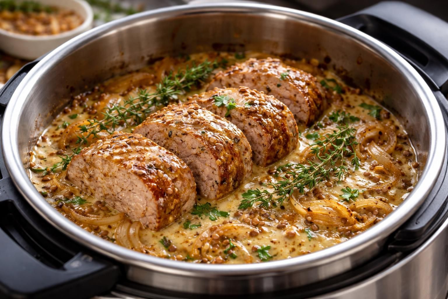 S’il y a bien quelque chose qui peut faire toute la différence dans ce type de recette, c’est la sauce. Parfois, la sauce à la moutarde peut sembler un peu liquide. Voici quelques astuces pour optimiser sa texture. Après la cuisson, laissez le Cookeo en mode maintien au chaud pendant quelques minutes sans couvercle. Cela permet à la sauce de réduire et de gagner en onctuosité. Pour les amateurs de sauces épaisses, l’incorporation d’une cuillère de fécule de maïs délayée dans de l’eau froide peut vous aider à obtenir la consistance souhaitée.